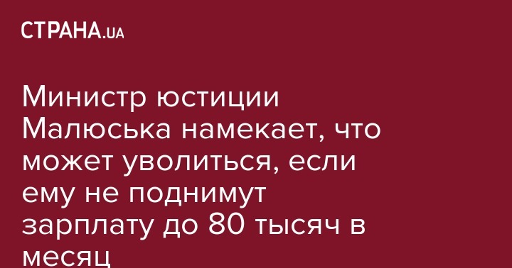 Министр юстиции Денис Малюська рассказал, что его не устраивает зарплата и он не исключает переход на другую работу. Об этом он заявил в интервью 24 каналу.