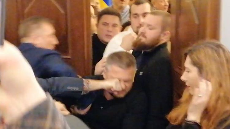 Драка между Андреем Богданцом и представителями ВО "Свобода", Скриншот: Трансляция заседания аграрного комитета