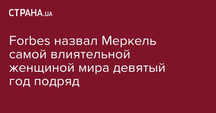 Канцлер Германии Ангела Меркель возглавила рейтинг 100 самых влиятельных женщин мира 2019 года по версии журнала Forbes. Она возглавляет этот список девятый год подряд.