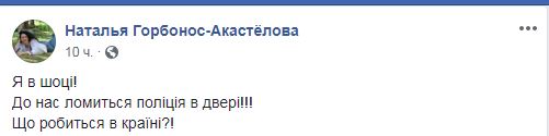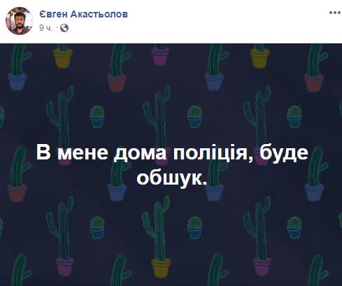 Евгений Акастелов в комментариях к своему посту написал, что обыск – "по делу Шеремета". Наталья Горбонос-Акастёлова добавила: "Они все связи новых подозреваемых по делу Шеремета отрабатывают. Трэш".