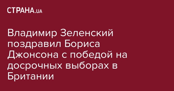 Президент Украины Владимир Зеленский поздравил премьер-министра Британии Бориса Джонсона с победой Консервативной партии на парламентских выборах, где она получила большинство в Палате общин. Об этом глава Украины написал в своем Telegram-канале.