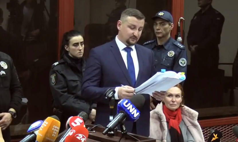 17:10 Адвокат сказал, что хотел, чтобы допросили двух свидетелей, один из который бывший муж Кузьменко, второй - директор института, где она работает. А судья Вовк отказал в этом, что стало еще одним поводом для отвода