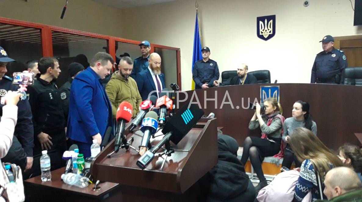 18:44 Ходатайство не удовлетворили. То есть меру пресечения продолжит избирать судья Вовк. Группа поддержки Кузьменко в зале кричит: "Ганьба! Собаки!" В зале на короткое время выключили свет.