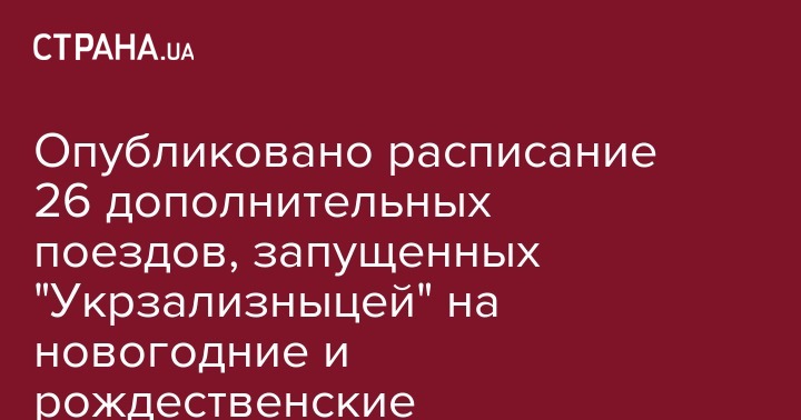Опубликовано расписание 26 дополнительных поездов, запущенных "Укрзализныцей" на новогодние и рождественские праздники