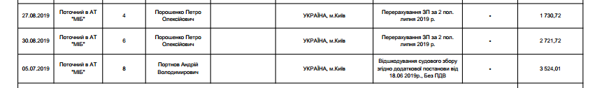 Бывший президент Украины Петр Порошенко выплатил Андрею Портнову 3500 гривен судебного сбора по проигранному судебному делу.