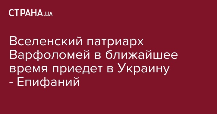 Вселенский патриарх Варфоломей в ближайшее время приедет в Украину - Епифаний