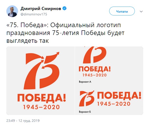 "75. Победа": Официальный логотип празднования 75-летия Победы будет выглядеть так", - говорится в сообщении.