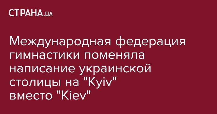 Международная федерация гимнастики поменяла написание украинской столицы на "Kyiv" вместо "Kiev"