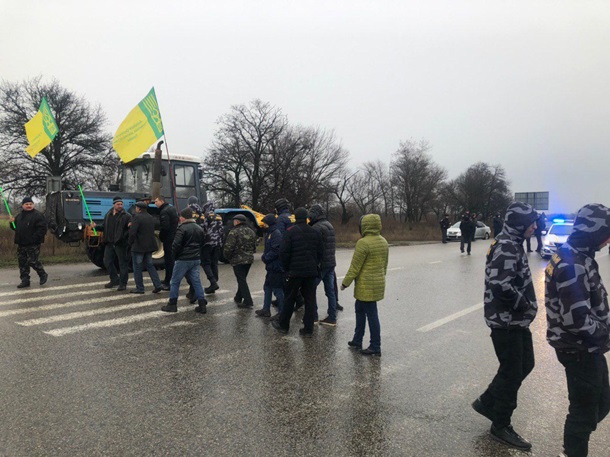 Под Харьковом Нацкорпус перекрыл трассу, требуя отменить продажу земли в Украине