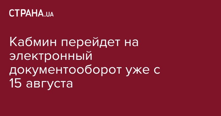 Кабинет министров Украины полностью перейдет на электронный документооборот во взаимодействии центральными органами исполнительной власти с 15 августа 2016 года. Об этом сообщил министр Кабинета министров Александр Саенко, сообщает пресс-служба правительства.