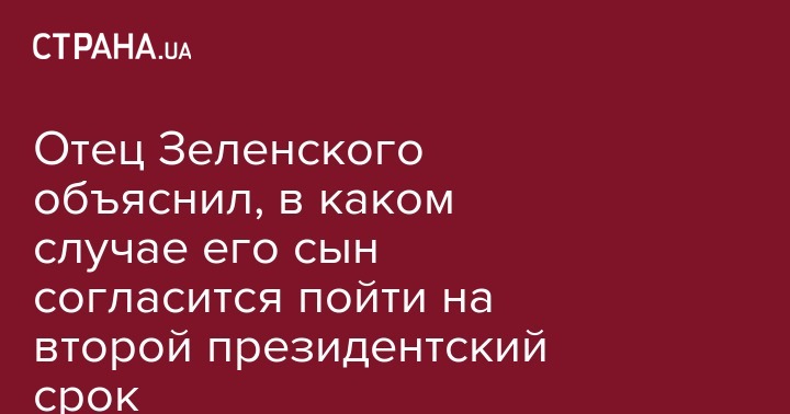 Отец президента Украины Александр Зеленский считает маловероятным то, что его сын захочет остаться на второй срок в кресле главы государства. Но при этом он назвал причину, которая может заставить его все же пойти на президентские выборы. Об Зеленский-старший рассказал в интервью "Стране".