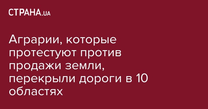 Во вторник, 17 декабря, в десяти областях Украины: Херсонской, Полтавской, Харьковской, Одесской, Кировоградской, Черкасской, Житомирской, Хмельницкой, Ивано-Франковской, Львовской областях, а также в Киеве проходят акции против снятия моратория на продажу земли в Украине рынка земель. Протестующие перекрыли дороги. Об этом сообщает Всеукраинская Аграрная Рада.