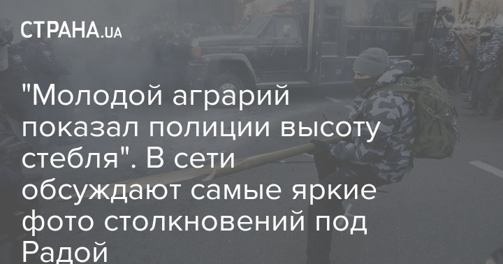 "Молодой аграрий в Киеве показывает полиции какую высоту стебля кукурузы он вырастил в этом сезоне" - прокомментировал фото с противостояния с полицией Руслан Кошурба.