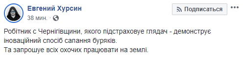 "Рабочий с Черниговщины, которого подстраховывает зритель - демонстрирует инновационный способ прополки свеклы. И приглашает всех желающих работать на земле" - написал журналист Евгений Хурсин.