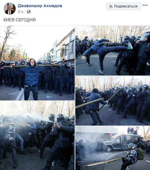 Пользователи с иронией обсуждают самые яркие фото из центра Киева с кадрами столкновений представителей Нацкорпуса и Нацдружин с силовиками.