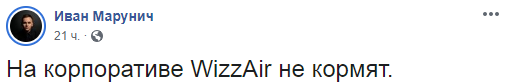 В соцсетях развернулся флешмоб после того, как блогер и музыкант Иван Марунич пошутил в Facebook: "На корпоративе WizzAir не кормят".