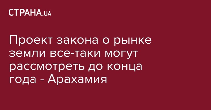 Верховная Рада может рассмотреть законопроект о рынке земли до конца этого года. Об этом заявил народный депутат и глава фракции "Слуга народа" Давид Арахамия в кулуарах Рады, передает "УНН".