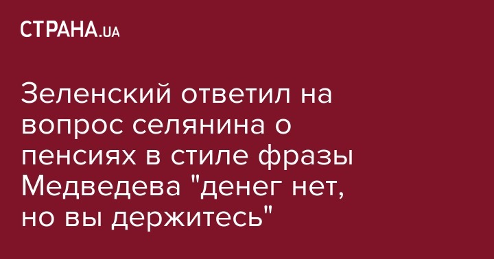 "С пенсиями, разумеется, очень сложный вопрос. Невозможно жить. Понимаю. Будем стараться увеличить пенсии. Пока нам не предоставило всю схему Минсоцполитики. Они должны предложить схему с пенсиями. Сказали нам, что постепенно, частями, учитывая возраст людей, будем помогать и увеличивать. Но просто надо, чтобы люди хоть налоги платили. Откуда взять деньги? Все понимаем, что на 2,5 тысячи человек не может существовать и просто быть человеком. Это понятно. Ну, увеличим, ну, дайте хоть время ", - произнес растерянный Зеленский.