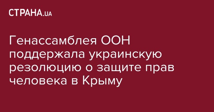 Генеральная ассамблея ООН поддержала внесенный украинской стороной проект резолюции о защите прав человека в Крыму в условиях российской оккупации.