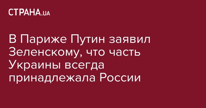 В Париже Путин заявил Зеленскому, что часть Украины всегда принадлежала России