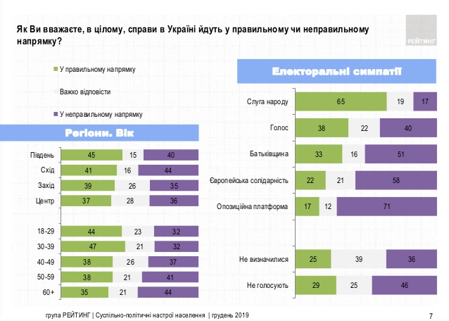 Как показал соцопрос, 40% опрошенных украинцев считают, что страна движется в правильном направлении, 38% – в неправильном, 22% – не смогли оценить. За последние 2 недели произошел рост положительных оценок (с 33 до 40%) и уменьшение негативных (с 48 до 38%).