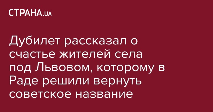 В среду, 18 декабря, профильный Комитет Верховной Рады проголосовал о переименовании села во Львовской области, жители которого хотели вернуть ему старое название. Об этом сообщил Министр Кабинета министров Украины Дмитрий Дубилет на своей странице в Facebook.