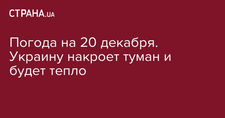 Погода на 20 декабря. Украину накроет туман и будет тепло