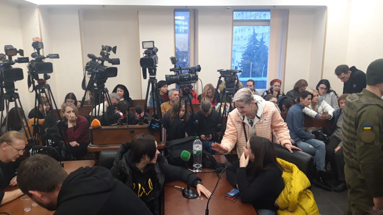 Сама подозреваемая сидит в камере, активисты говорят, что пока суд не состоится они не отпустят Кузьменко из зала суда в СИЗО и намерены находится там до понедельника.