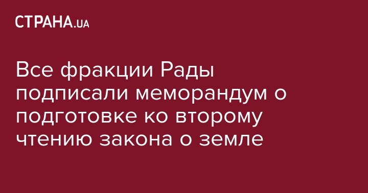 Все фракции Рады подписали меморандум о подготовке ко второму чтению закона о земле
