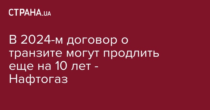 В 2024-м договор о транзите могут продлить еще на 10 лет - Нафтогаз