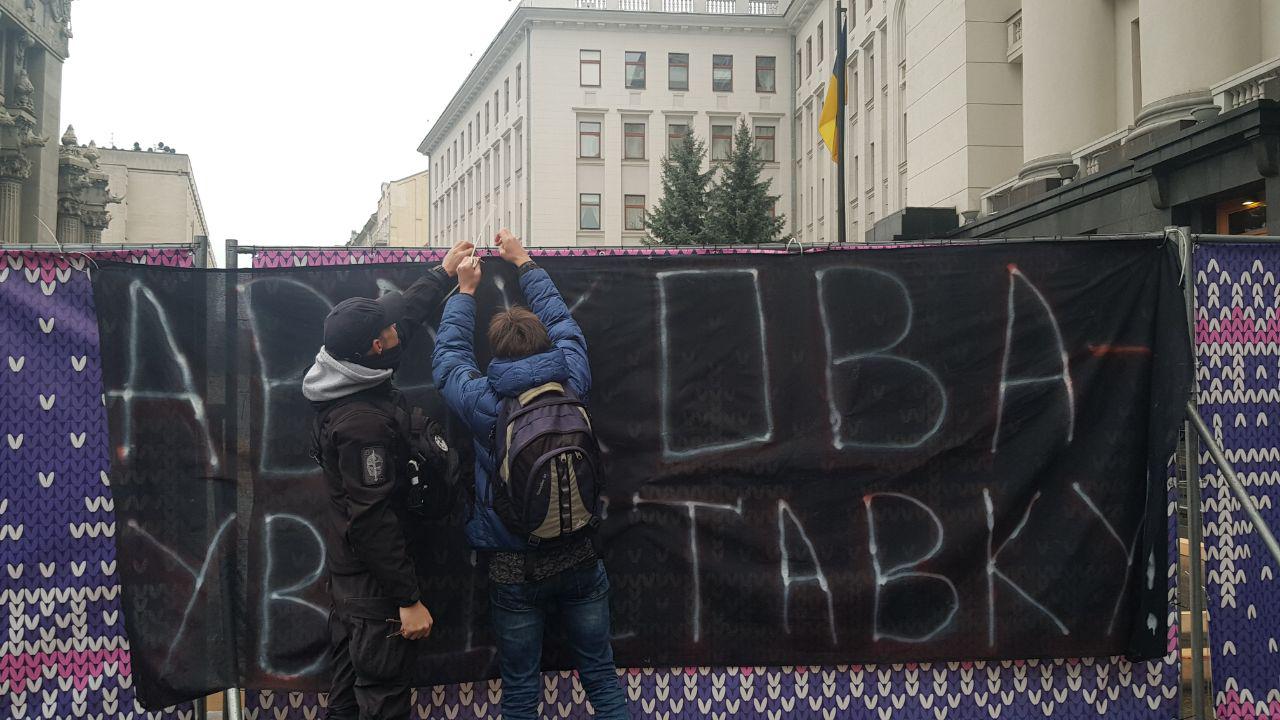 В ходе акции митингующие провели небольшой перформанс: "отделили" на плакате Авакова от Зе, заявив, что "мусору место в урне".