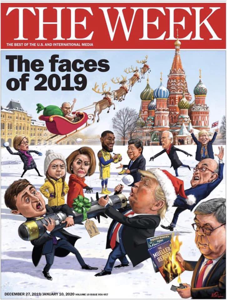 На обложке Зеленский и Трамп вырывают друг у друга ракету. Это аллюзия к тому, что после утечки информации о разговоре Зеленского с Трампом в США начался скандал об импичменте американскому лидеру Дональду Трампу. А вчера, 22 декабря, стало известно, что через час после разговора американского и украинского президентов хозяин Белого дома приказал заблокировать военную помощь Украине.