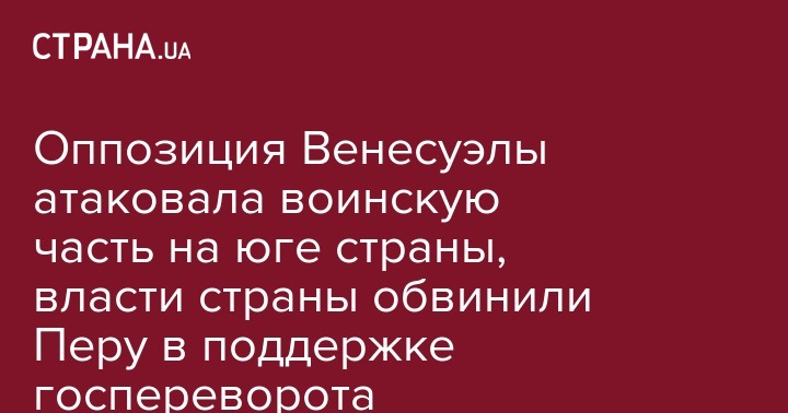 В Венесуэле произошла очередная попытка государственного переворота. Боевая группа военных оппозиционеров атаковала воинскую часть, расположенную на юге страны, на границе с Бразилией. В ходе атаки погиб как минимум один военнослужащий.