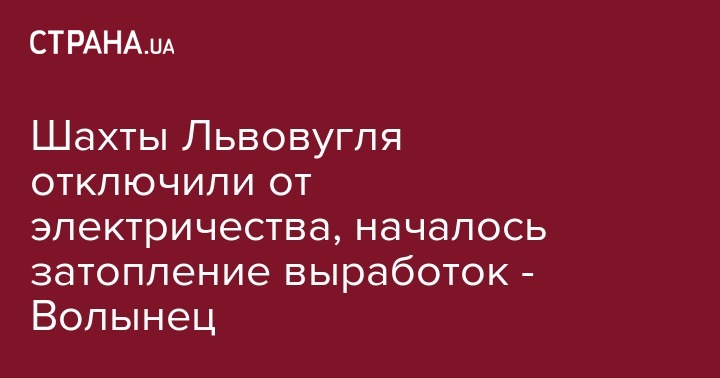 Сразу шесть шахт "Львовугля" отключили от электричества из-за чего началось затопление подземных выработок. Об этом рассказал председатель независимого профсоюза горняков Украины Михаил Волынец на своей странице в Facebook.