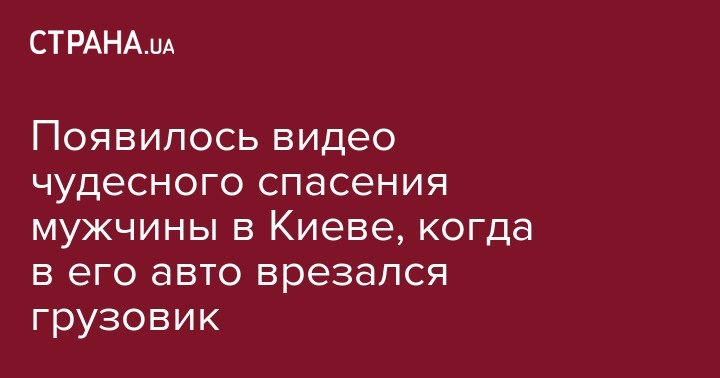 Появилось видео чудесного спасения мужчины в Киеве, когда в его авто врезался грузовик
