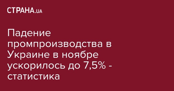 Падение промпроизводства в Украине в ноябре ускорилось до 7,5% - статистика