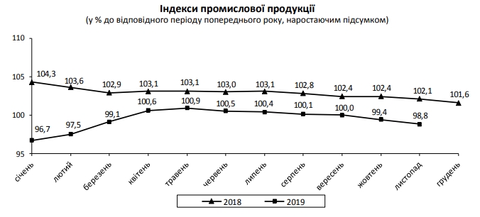 За первые 11 месяцев 2019 года в добывающей промышленности и разработке карьеров рост составил 0,8%, в перерабатывающей промышленности - падение на 1,7%, в поставках электроэнергии, газа, пара и кондиционированного воздуха - падение на 2,7%.