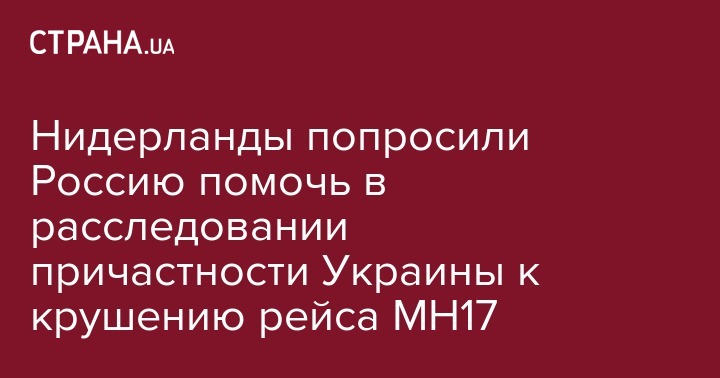 Нидерланды попросили Россию помочь в расследовании причастности Украины к крушению рейса MH17