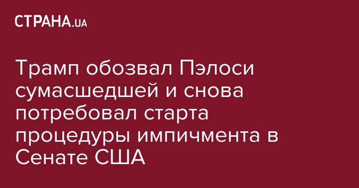 Президент США Дональд Трамп снова выступил с резкой и грубой критикой в адрес спикера Палаты представителей Нэнси Пэлоси и опять потребовал немедленного старта процедуры импичмента в Сенате США, где большинство у республиканцев.