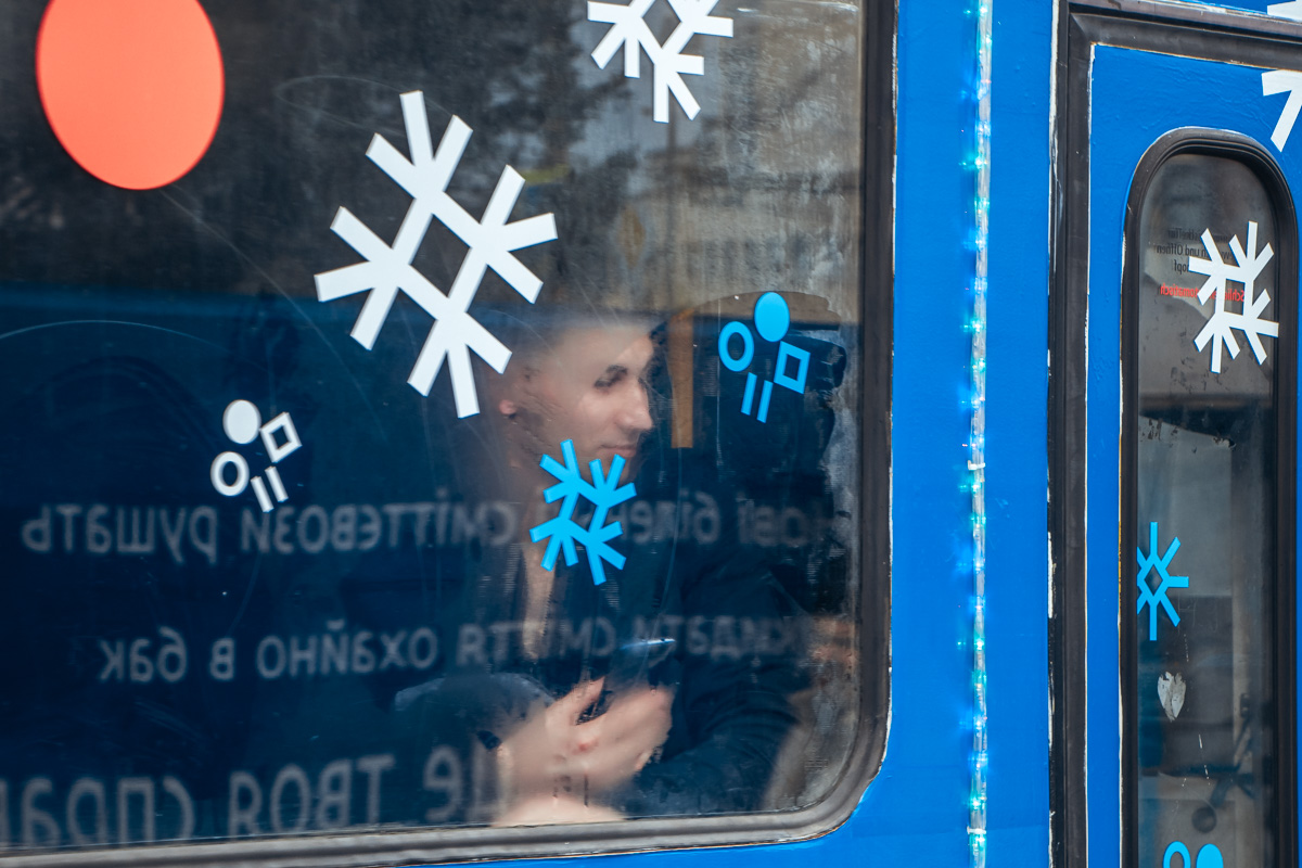 Как отмечается, трамвай украсили гирляндами, рисунками снежинок и шариками, а также текстовыми поздравлениями. От подобной инициативы у пассажиров поднимается настроение.