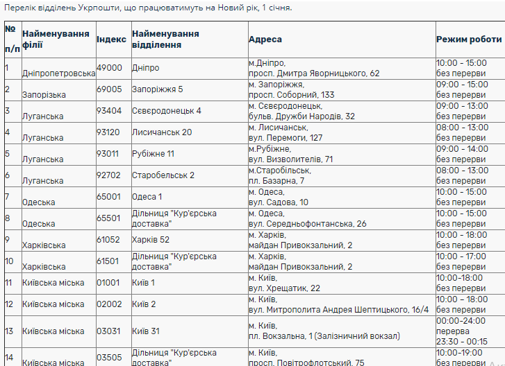 Выходной у Укрпочты будет 1 и 7 января. При этом будет открыто ограниченное количество дежурных отделений, но их рабочий день будет сокращен.