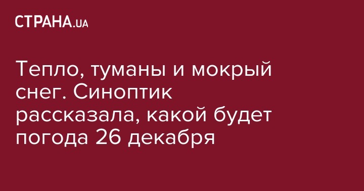 Тепло, туманы и мокрый снег. Синоптик рассказала, какой будет погода 26 декабря