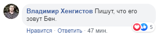 "Пишут, что его зовут Бен", - сообщает в комментарии к посту пользователь Facebook Владимир Хенгистов.