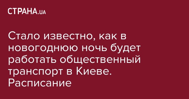 Стало известно, как в новогоднюю ночь будет работать общественный транспорт в Киеве. Расписание