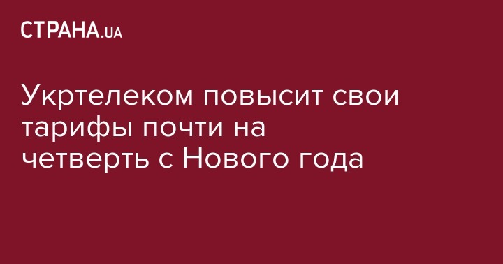Телекоммуникационный оператор "Укртелеком" решил повысить тарифы на 20-24% с 1 января 2020 года. Об этом сообщают "Украинские новости".