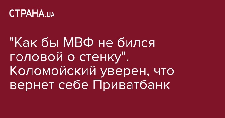 "Ну, хорошо, потерял банк. Ну, пока не вернул, но скоро верну...Не именно законным путем, так как положено по законодательству... Вот поверьте мне, справедливость восторжествует. Как бы МВФ не бился головой о стенку, законы придумывал, что-то рассказывал, все это пустые глупости", - заявил Коломойский.