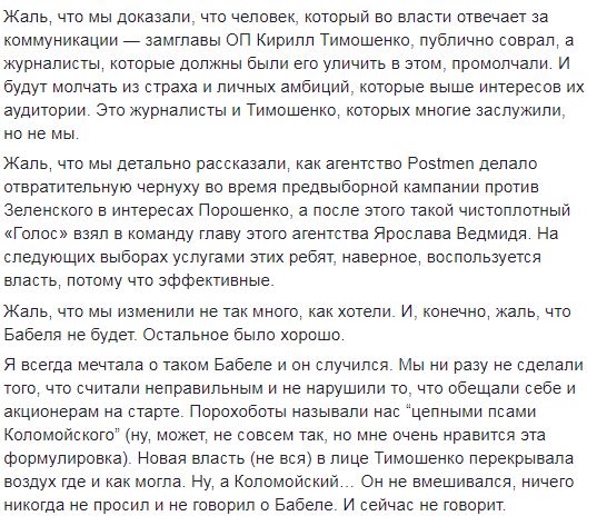 Она также не знает, будет ли на этом домене и дальше выходить контент с новой командой. "Это решат оставшиеся акционеры", - заявила Коберник и добавила, что ее среди акционеров не будет.