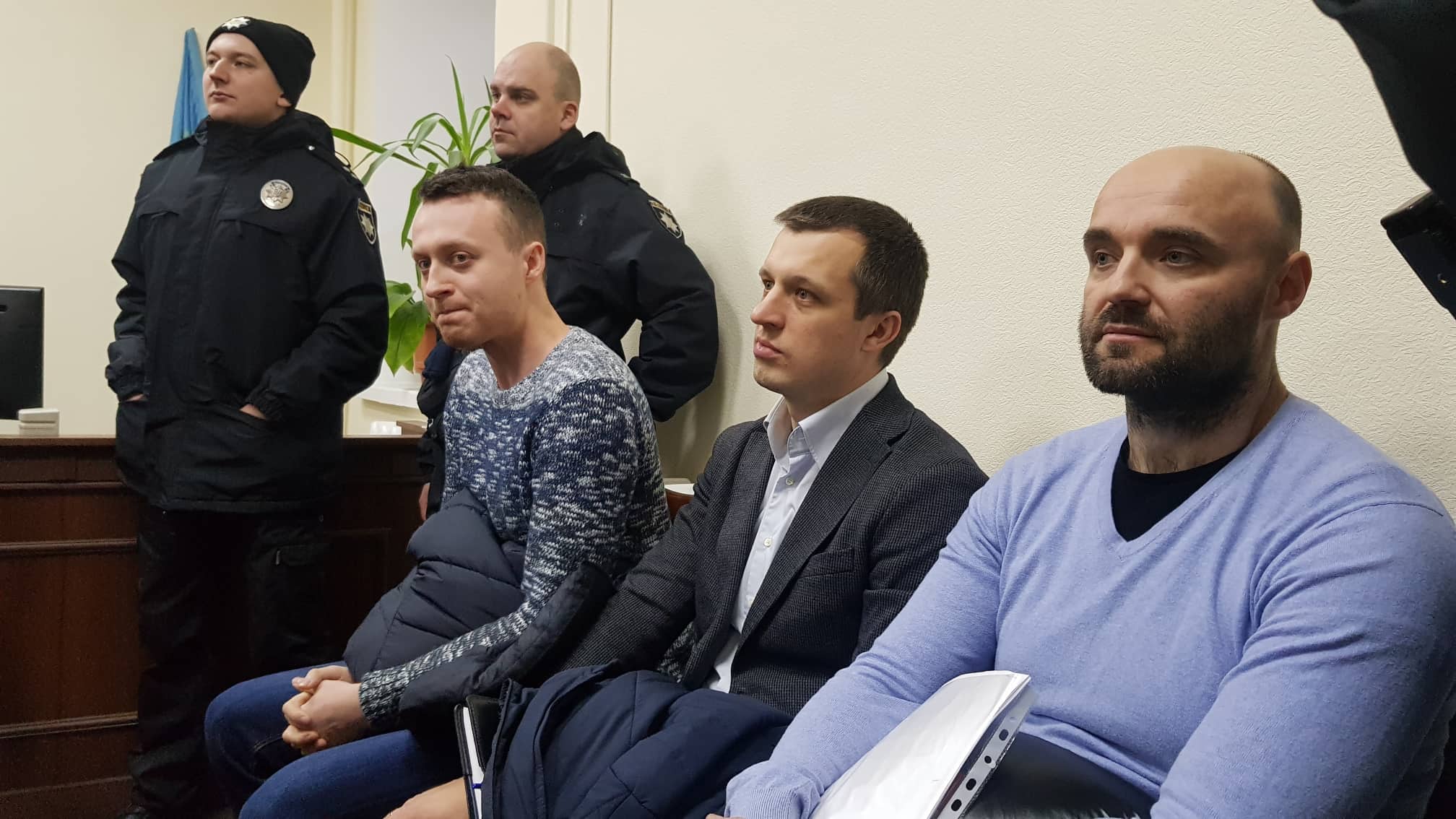 15:40 Потерпевший Дмитрий Кучер (крайний слева) с адвокатами