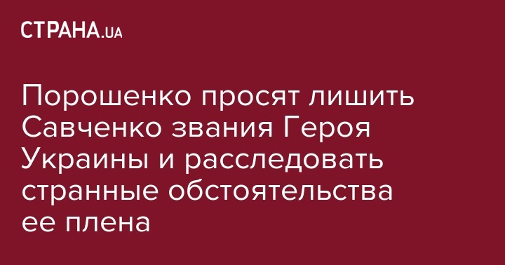 Автор петиции требует не только лишить Савченко звания Герой Украины, но и провести расследование относительно ее здоровья, взятия в плен и действий, которые привели к гибели воинов во время ее задержания боевиками. За первый день петицию подписали более одной тысячи человек. Для того, чтобы она попала на рассмотрению президенту, необходимы подписи не менее 25 тысяч.