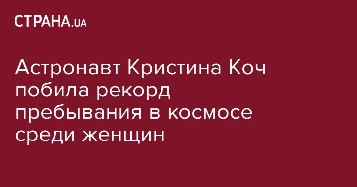 Американская астронавт Кристина Коч в субботу, 28 декабря, поставила рекорд пребывания в космосе среди женщин. Она побила предыдущий рекорд в 288 дней и собирается пробыть в космосе еще примерно два месяца. Об этом пишет "Голос Америки".